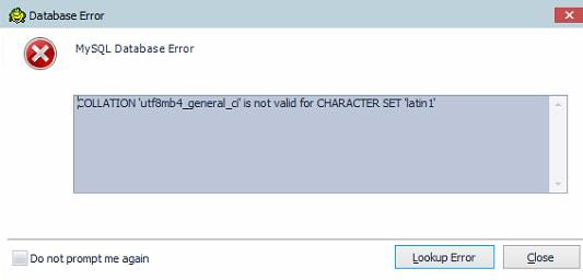 COLLATION 'utf8_general_ci' is not valid for CHARACTER SET 'latin1'